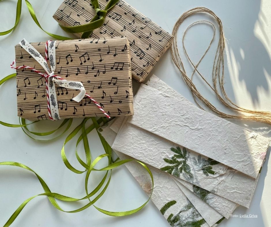 Når du har funnet dine flotte (gjenbrukte eller bærekraftige) julegaver som du vil gi bort til venner og familie, hvordan skal de pakkes inn? Hvert år bruker nordmenn 60 000 kilometer gavepapir, noe som tilsvarer 2700 tonn med papir! Glanset julepapir kan ikke gjenvinnes, på grunn av at det inneholder mye fargestoffer, leire og miljøstoffer. Dermed blir julepapiret et kroneksempel på et produkt som har ekstremt kort brukstid, vi pakker inn, pakker ut, kaster i restavfall og det blir forbrent.